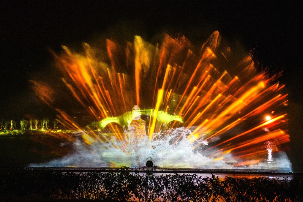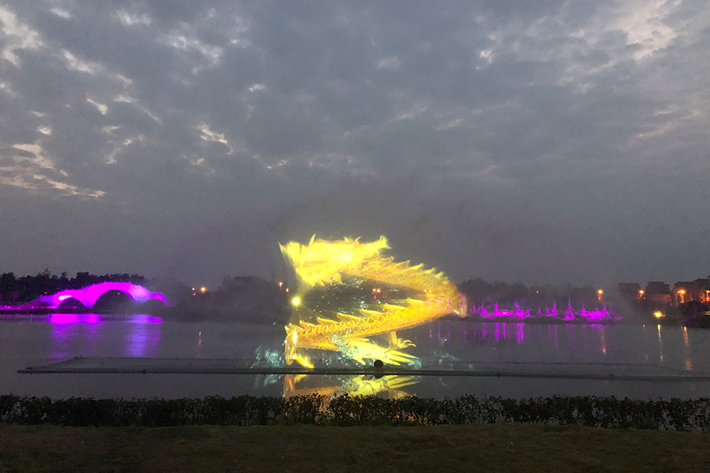 The water screen show has the visual penetrability, can let the image picture in the water mist present the very strong stereoscopic feeling, forms the gorgeous dazzling fancy effect and the dazzle cool colorful visual atmosphere, causes the audience to obtain the ethereal illusory visual enjoyment.