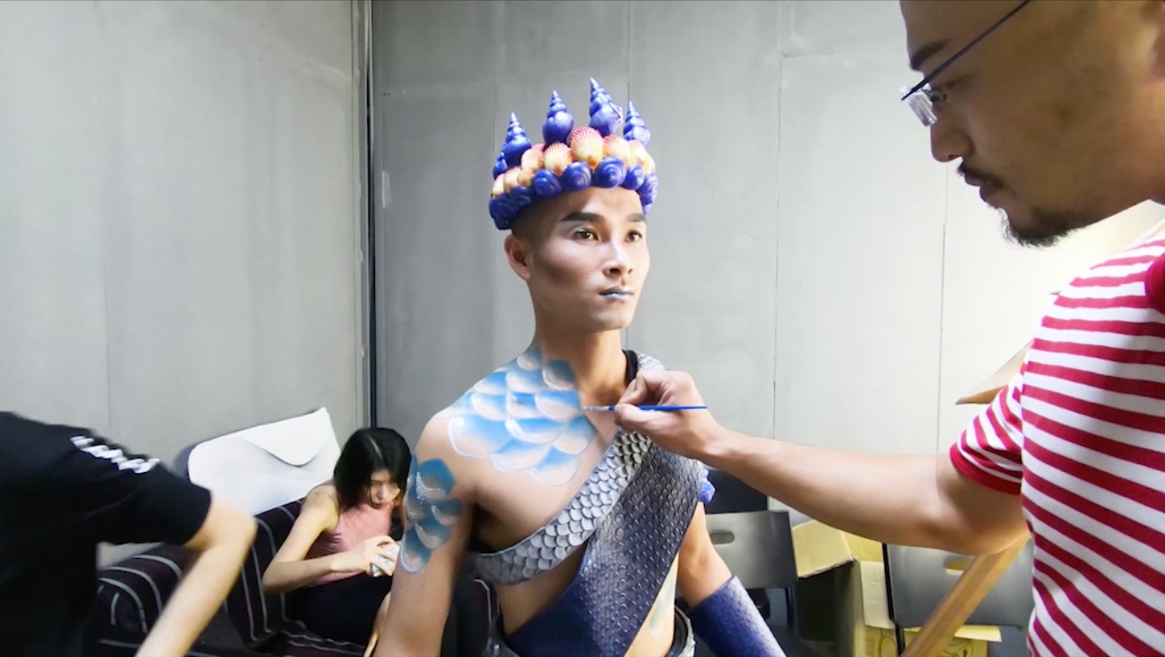 影片拍摄邀请越南本地著名演员参演,并获得专业服装道具设计团队的支持,利用高品质材料进行手工制作,最大程度地还原了神话时代人物的独特风姿,使观众更易融入故事氛围当中。为达到完美的演出效果,导演团队摒弃了传统的舞台舞美设计,以越南本地特色建筑造型为参考,定制了专业的实景墙体作为投影界面。激光投影和电影特效相互映衬,几经易稿,删繁就简,最后呈现的效果甚至超过预期,让人仿佛身临其境。