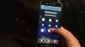 此次水幕秀最有趣的地方在于,只要用手机扫描相应的二维码即可进入互动程序,选择自己喜欢的图案并上划,水幕上就能同时展现出来。