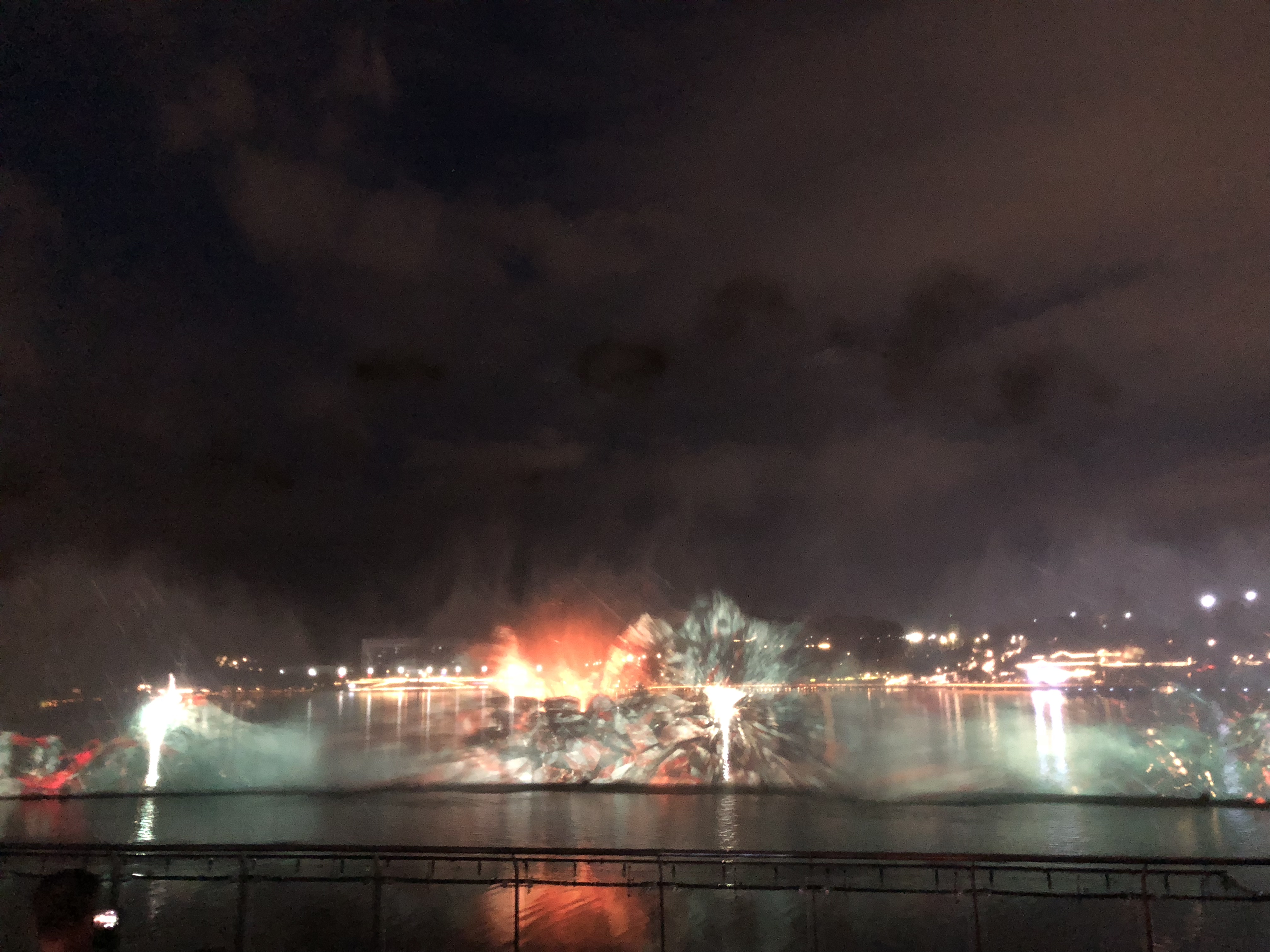 从考察到研讨,从文化到技术,从彩排到调试,黎铎教授、曾祥铣教授鼎力相助,公司全体马不停蹄,日以继夜,内容上深度挖掘,技术上精益求精,铸就震撼世界的伟大精品。该水幕演出将成为新蒲新区的“经典节目”而长期保留并演出。