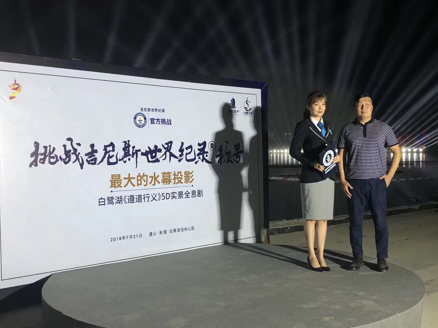 由汉合天辰打造的5D实景全息剧《遵道行义》打破了吉尼斯世界记录,打造了三个“之最”:国内最大单体建筑投影9600平方米; 全球最大3D水幕投影1582平方米;全球首创5D高科技实景演绎剧。市领导高度重视,中国央视新闻网、贵州电视台、遵义电视台、搜狐新闻、腾讯新闻、头条资讯等各大媒体争相报道。