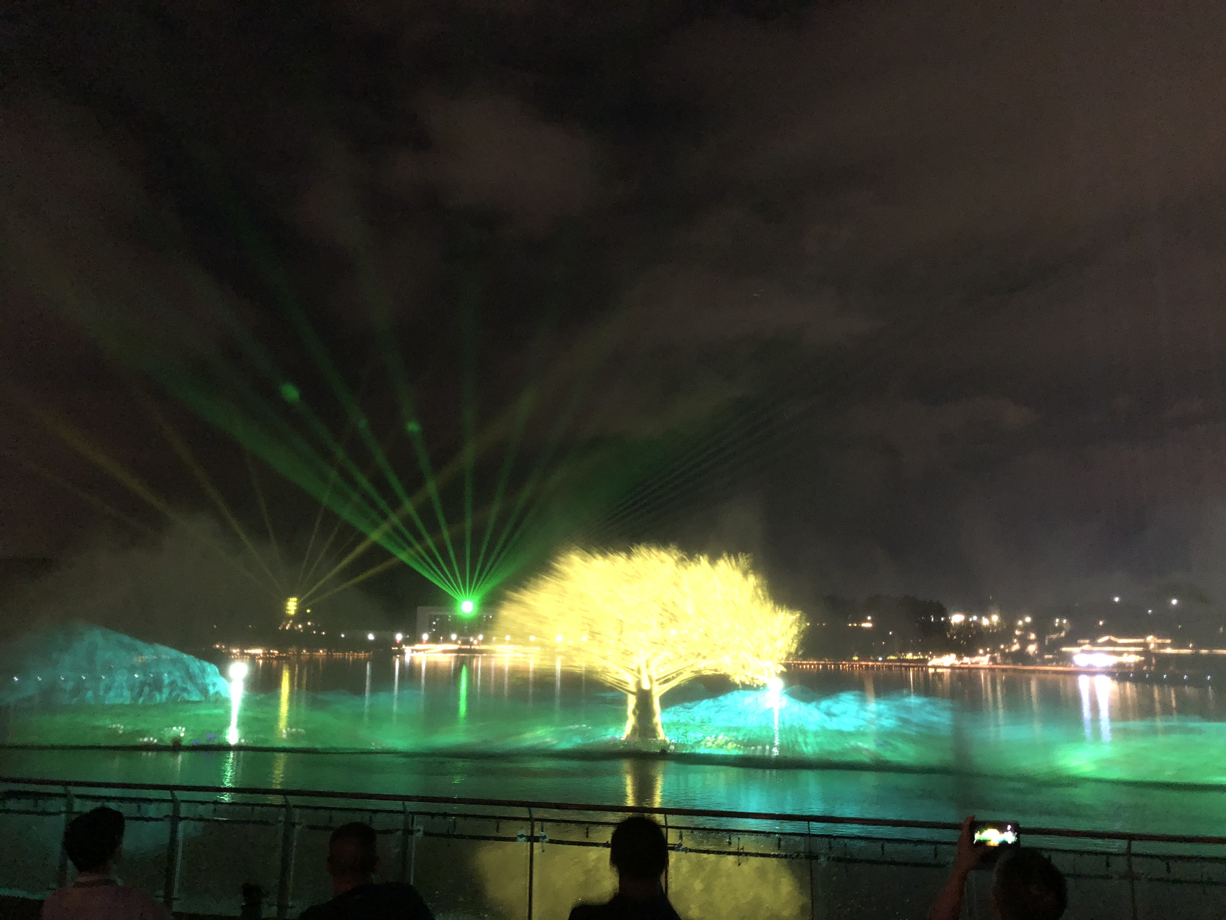 该项目运用水幕、喷泉、音乐、全彩激光、焰火、等国际最新的多媒体艺术和技术成果结合的表演。呈现水火交融、电光流影、时空穿越的三维、立体、多层次、跨平台、全感官、浸入式震撼体验,带游客进入非凡的5D魔法世界。