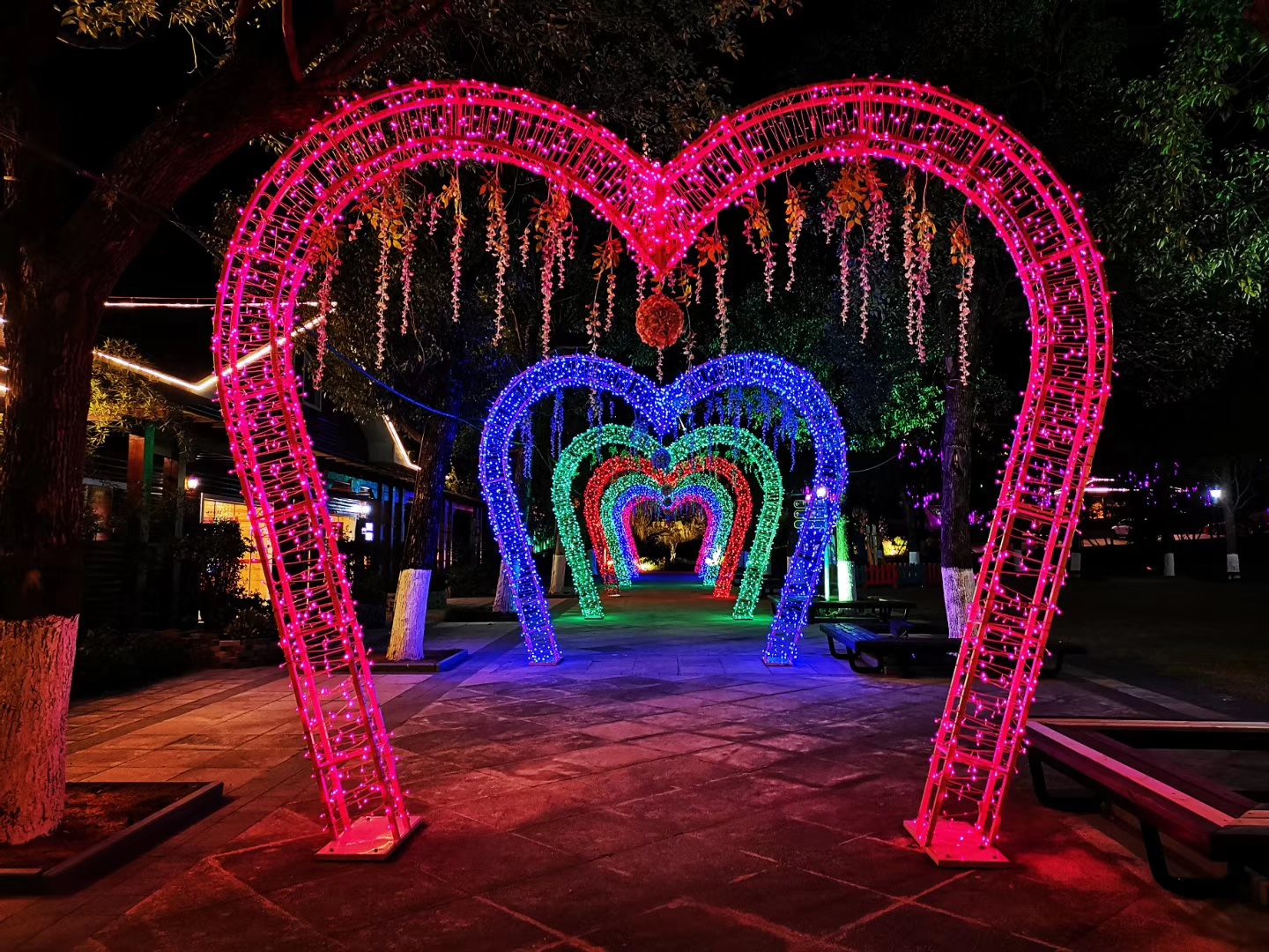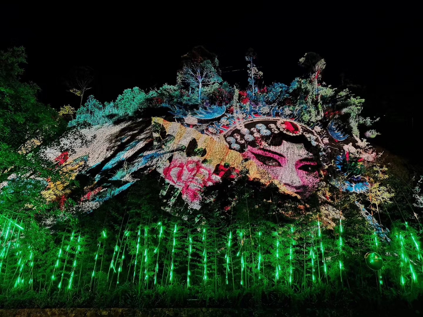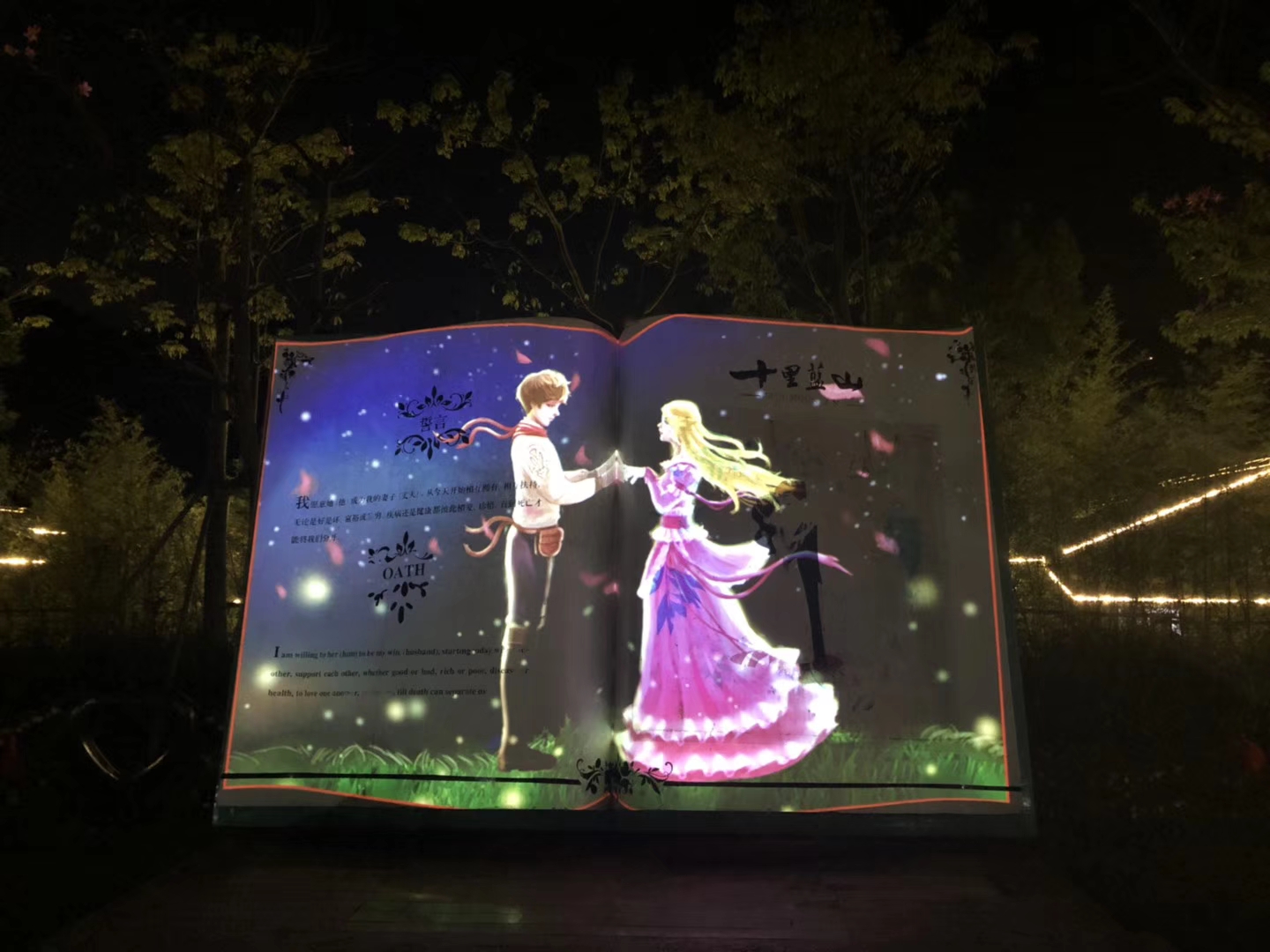 梦幻之境,炫彩流光,璀璨降临!中国首个爱情主题光影梦幻园在4A景区十里蓝山震撼开启!“执子之手,爱在蓝山”,汉合天辰将爱情、星光、女神、花海等作为创作设计理念,集中了裸眼3D水幕秀、全息投影、互动投影、山体投影、岩石Mapping、灯光特效等火爆点,使光影艺术与蓝山风光完美结合,永恒的爱情与时尚的科技碰撞,自然风光与光影艺术交辉,给游客带来一场奇特、璀璨、梦幻、浪漫的视听盛宴,十里蓝山的夜晚不再平静!
